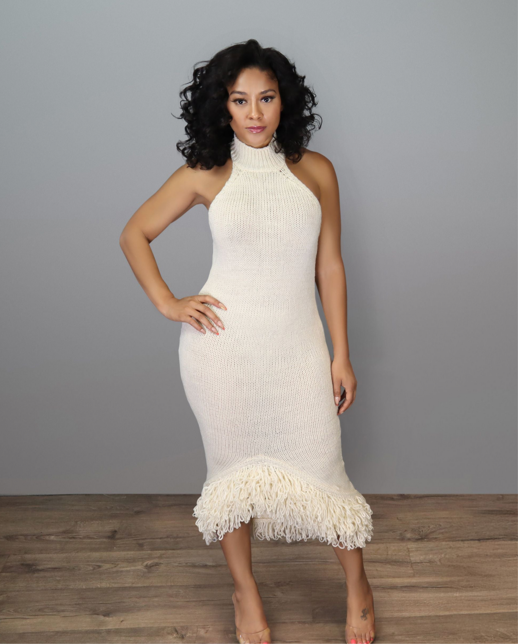 The Sahara Fringe Dress offers the perfect blend of style and comfort for the summer season. Crafted from breathable knit fabric, it showcases an open back and elegant fringe accents along the hem. This dress ensures you stand out with effortless sophistication wherever you go.